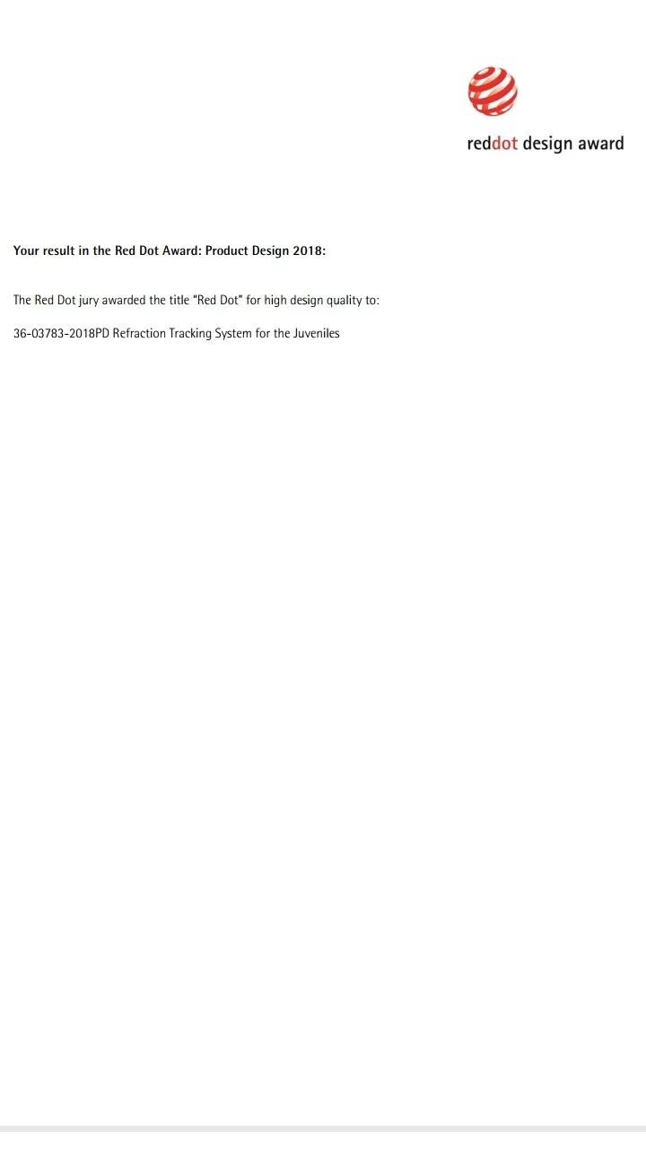 贝尔目屈光跟踪斩获了德国设计工艺红点奖