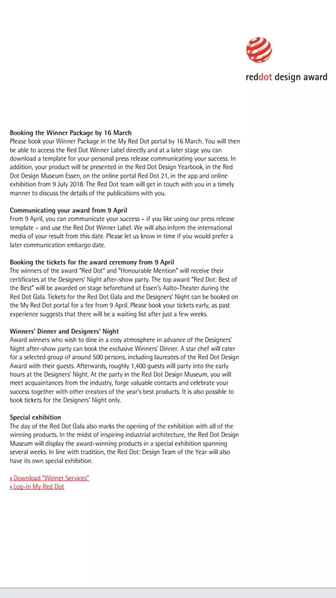 德国“红点奖”与德国"IF奖"、美国"IDEA奖"一起并称为世界三大设计奖。